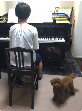 ピアノをひいているときリンジーちゃん(トイプードル)がきて、かわいいです。